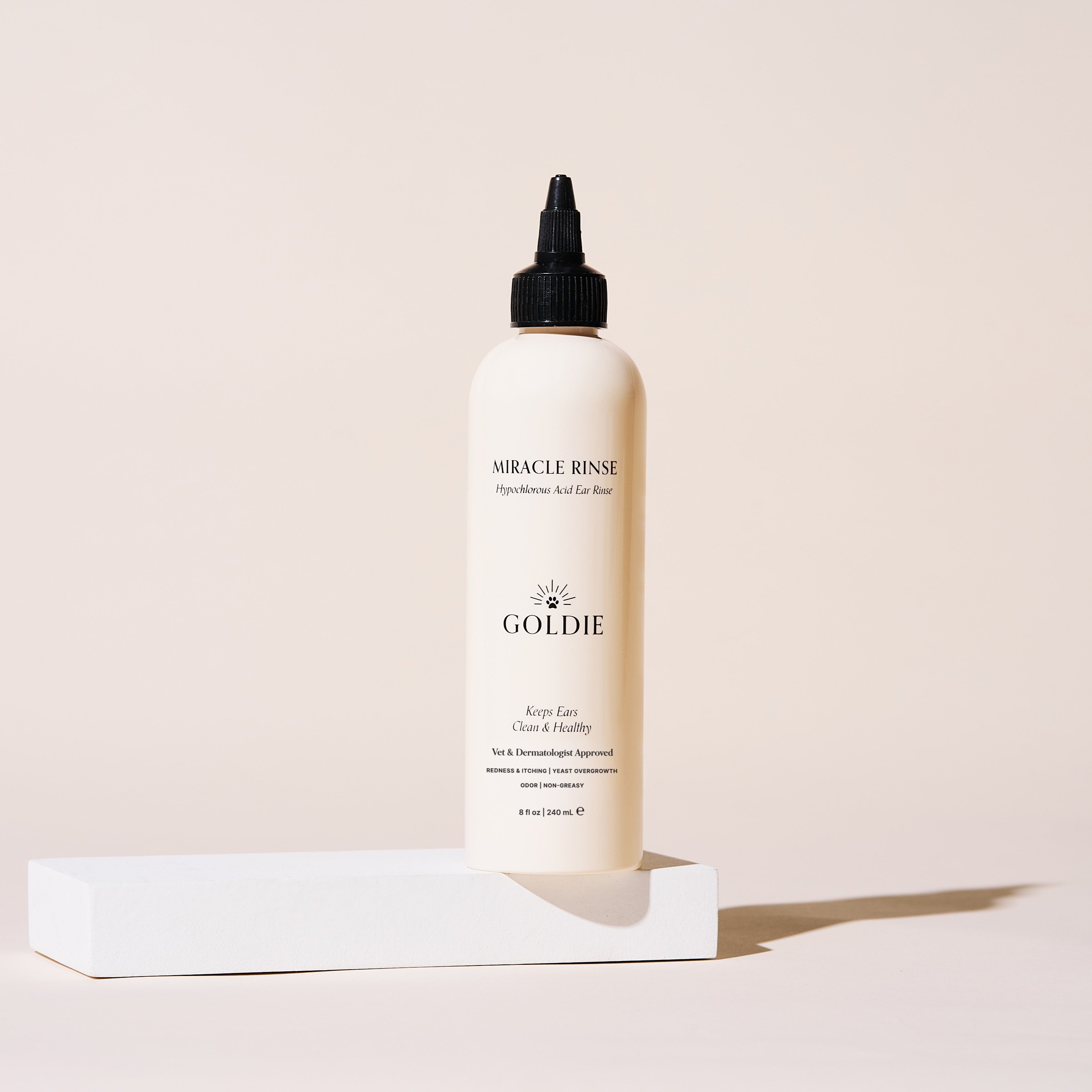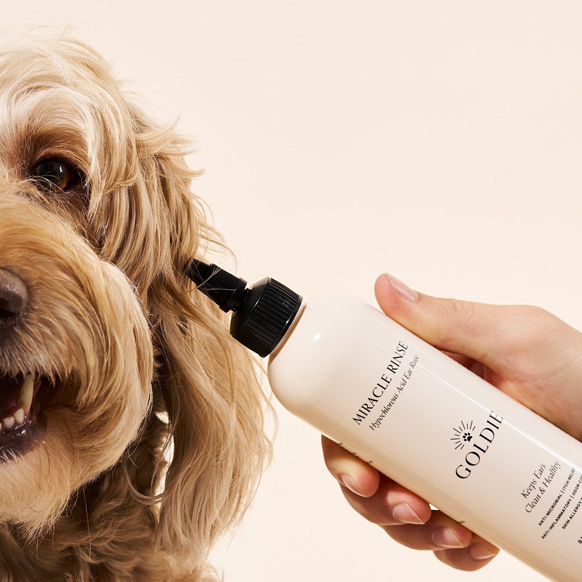 Miracle Rinse: A Vet & Dermatologist-approved, gentle hypochlorous acid ear rinse keeps your dog’s ears clean, healthy, and irritation-free.