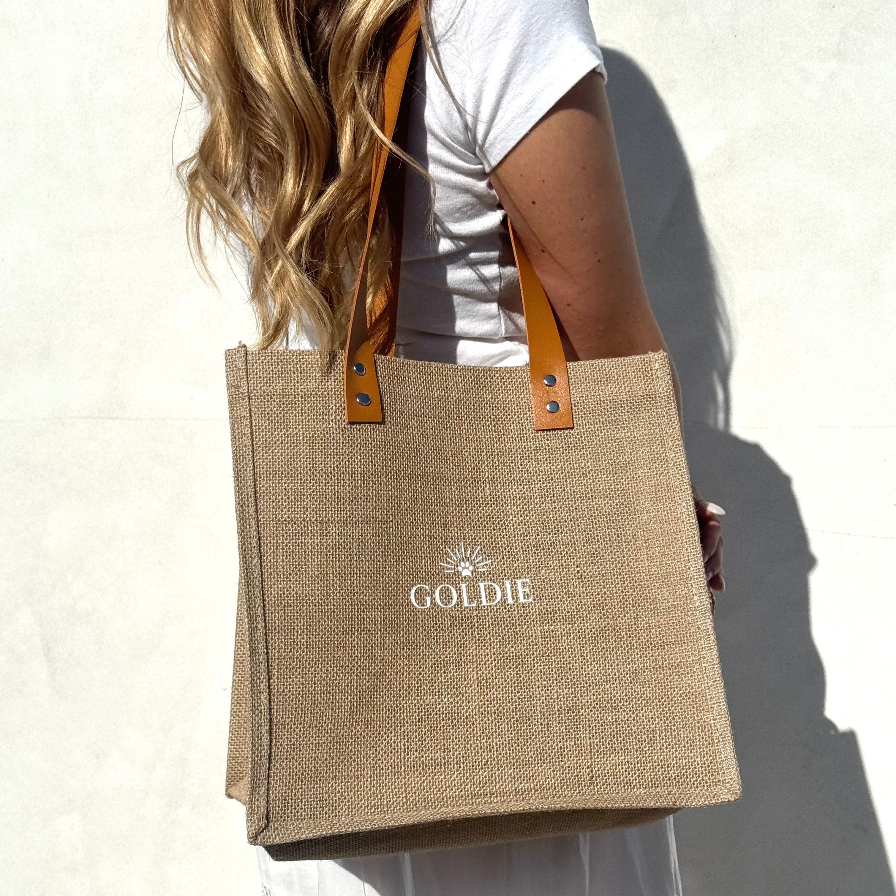 This Jute Tote features a waterproof interior and is perfect for beach days, overnight stays, park days, picnics, and anytime you're on the go!